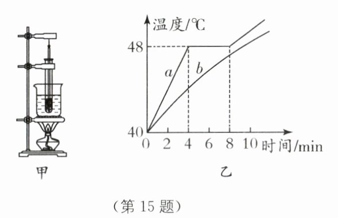 15.(2025·南京建邺区期末)小冰同学用如图甲所示装置"探究固体的熔化特点",用温度计分别测量试管内a、b两种物质的温度,温度随时间变化的关系图像如图乙所示.实验中采用"水浴法"加热的目的是