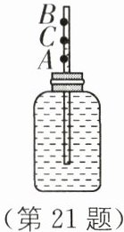 21.(7分)跨学科 数形结合 如图所示是小明用小药瓶、细玻璃管和带颜色的酒精制作成的简易温度计.