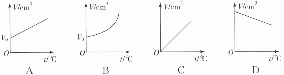 (5)小明上网查到:酒精的温度每改变1℃,其变化的体积和它在0℃时的体积之比是一个定值.如图所示能大致描述酒精体积随温度变化规律的是