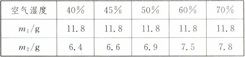 (5)实验中是通过比较电子秤示数的变化来判断蒸发快慢的,步骤③中多次实验的目的是排除偶然性,得出普遍规律,由表中实验数据发现,空气湿度越大,两次电子秤示数的差值越小,表明液体蒸发越慢,所以可得出的结论是其他条件相同时,空气湿度越大,液体蒸发越慢.