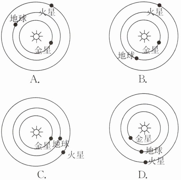 14. 行星“冲日”是地球轨道外侧的行星与地球、太阳形成一条直线的天文现象。一般来说,冲日时行星最亮,也最适宜观测。某学生利用“冲日”的时机对某行星进行观测,此时天体相对位置关系正确的是(