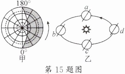 (1)当阳光照射地球情况如图中甲所示时,地球运行在乙中的 (