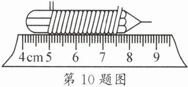 10. 在测金属丝直径时,采用了如图的方法进行测量。根据图示情况,回答问题: