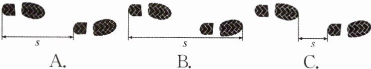 (2)选择合适的前进方式后,小红在湿地上进行测量,标记步距为s。下列测量方式正确的是(