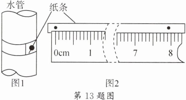 (1)他取一条长纸条紧包住水管,在纸条的重叠处用针戳一个小孔,如图1所示,而后将纸条拉直,纸条上就出现两个小孔,用刻度尺测出纸条上两小孔之间的距离,由图2可知本次测量水管的周长为______cm。