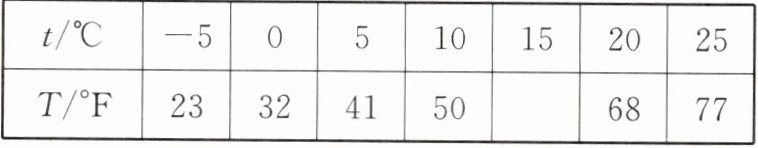 13. 某些说英语的国家,在商业和日常生活中,除使用摄氏度温标外还沿用另一种温标——华氏温标。华氏温标的单位写作$^{\circ}F$。细心的小科从天气预报中记录了在相同的温度时,两种不同的温标下的数值,整理如下表。