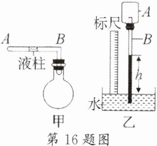 16. 学完“温度测量”后,班级开展了“自制温度计”的项目化学习。小灵、小溪在家利用生活中常见器材做了甲、乙两个温度计。请据图分析回答下列问题: