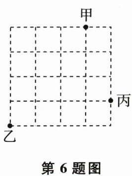 6. 如图,在某平面直角坐标系内,已知甲的坐标为(2,2),乙的坐标为(-1,-2),则丙的坐标为 ( )