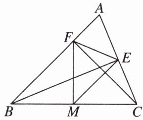 ■5如图,在△ABC中,CF⊥AB于F,BE⊥AC于E,点M为BC的中点。