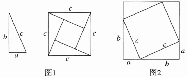 5 (1)我国著名的数学家赵爽,早在公元3世纪,就把一个长方形分成四个全等的直角三角形,用四个全等的直角三角形拼成了一个大的正方形(如图1),这个图形称为赵爽弦图,验证了一个非常重要的结论:在直角三角形中,两条直角边a,b与斜边c满足关系式$a^2+b^2= c^2$,称为勾股定理。