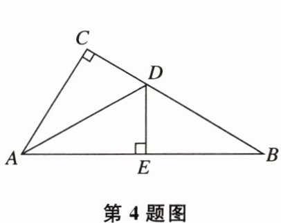 4 如图,在△ABC中,∠C= 90°,AD是△ABC的角平分线,DE⊥AB,垂足为E,DE= 1,BD= 2,若E是AB的中点,则AC的长为______。