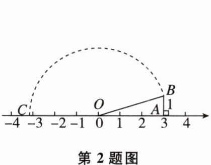 2 如图,数轴上点O,A所表示的数分别是0,3,过点A作AB⊥数轴,AB= 1,以O为圆心,OB长为半径画弧交数轴上A点的左侧一点C,则点C表示的数是( )