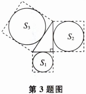 3 如图,分别以直角三角形的三边为边,向外作三个正方形,$S_1,S_2,S_3$是分别以直角三角形的三边长为直径的圆的面积。若$S_1= 36$,$S_2= 64$,则$S_3$的值为( )
