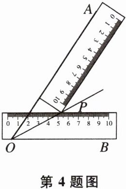 4小明同学在学习了全等三角形的相关知识后发现,只用两把完全相同的长方形直尺就可以作出一个角的平分线。如图,一把直尺压住射线OB,另一把直尺压住射线OA并且与第一把直尺交于点P,小明说:“射线OP就是∠BOA的平分线。”小明的做法,其理论依据是______。