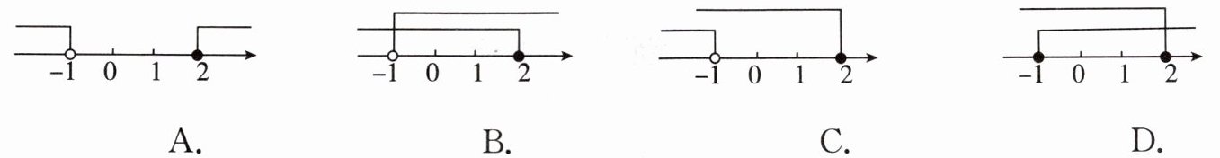 1在数轴上表示出不等式组$\begin{cases}1+x<0, \\ 2x-4\geq0\end{cases} $中每个不等式的解集,正确的是( )