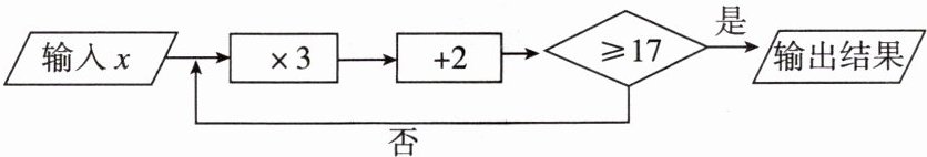 4如图,这是王彬同学设计的一个计算机程序,规定从“输入一个值x”到判断“结果是否≥17”为一次运行过程,如果程序运行两次就停止,那么x的取值范围为______。