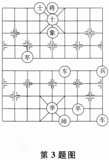 3 中国象棋文化历史久远,雅俗共赏,具有广泛的参与度。象棋残局是象棋的基础,《七星聚会》素有“残局之王”的称谓,深受广大棋迷喜爱。上右图就是残局《七星聚会》。如果建立平面直角坐标系,使“帅”位于点(-1,-2),“象”位于点(-2,5),那么“兵”在同一坐标系下的坐标是 ( )