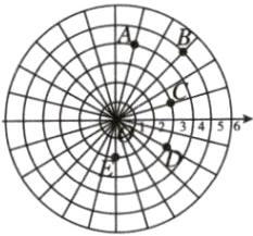 (2)请在图2中标出点B(5,45°),点E(2,-90°)。