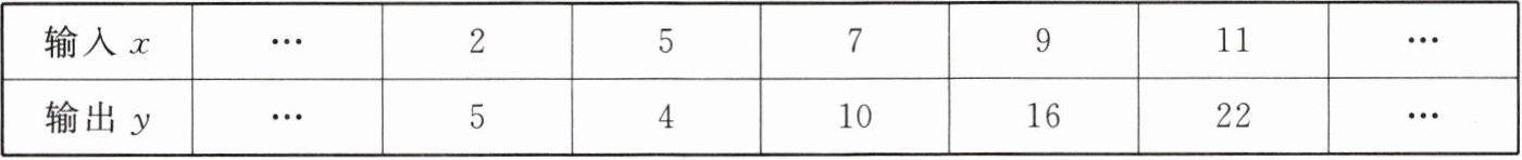 | 输入$x$ | … | 2 | 5 | 7 | 9 | 11 | … |