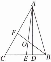 16. (10分)如图,在△ABC中,∠C= 60°,AD是高线,两条角平分线AE和BF相交于点O。