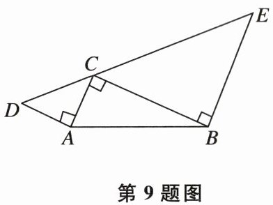 9. 如图,在Rt△ABC中,∠ACB= 90°,AB= 5,分别以AC,BC为直角边作等腰直角三角形ACD和等腰直角三角形BCE。若△ACD的面积为$S_1,△BCE$的面积为$S_2,$则$S_1+S_2$的结果为 ( )
