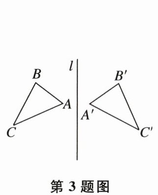 3. 如图,△ABC与△A'B'C'关于直线l对称,若∠A= 65°,∠C'= 38°,则∠B的度数为 ( )
