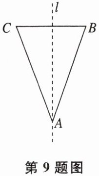 9. 如图,如果直线$l是\triangle ABC$的对称轴,其中$\angle B= 70^\circ$,则$\angle C$的度数为______。
