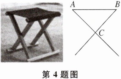 4. 如图,这是折叠凳及其侧面示意图。若$AC= BC= 18\ cm$,则折叠凳的宽$AB$可能为( )