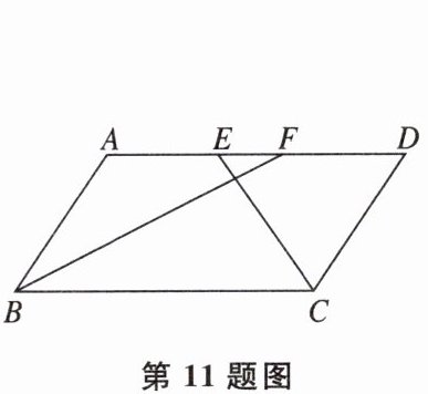 11. 如图,在四边形$ABCD$中,$AD// BC$,$DC= AB$,$BF平分\angle ABC$,交$AD于点F$,$CE平分\angle BCD$,交$AD于点E$,若$AB= 6$,$EF= 2$,则$AD$的长为______。