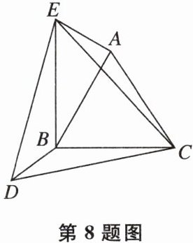 8. 如图,已知$\triangle ABC和\triangle CDE$都是等边三角形,若$\angle AEB= 70^\circ$,则$\angle EBD$的度数是( )