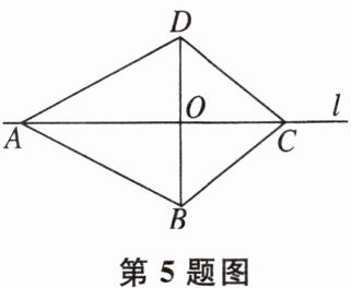 5. 如图,四边形$ABCD关于直线l$对称,有下面的结论:①$AB// CD$。②$AC\perp BD$。③$AO= CO$。④$AB\perp BC$,其中正确的结论有( )