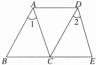 5 如图,已知$AC// DE$,$\angle 1= \angle 2$。求证:$AB// CD$。