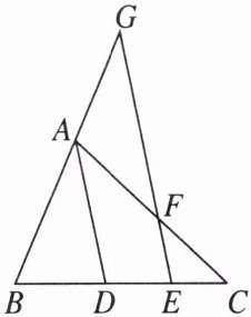 16. (10分)如图,在$\triangle ABC$中,$AD平分\angle BAC$,过线段$CD上一点E作EG// AD$,交$AC于点F$,交$BA的延长线于点G$。
