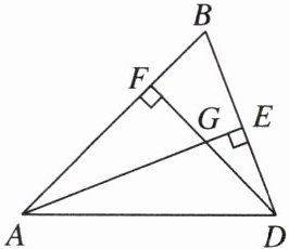 13. 如图,在$\triangle ABD$中,$\angle BAD= 45^\circ$,$AE\perp BD于点E$,$DF\perp AB于点F$,交$AE于点G$,若$BE= 4$,$DE= 3$,则$AG= $______。