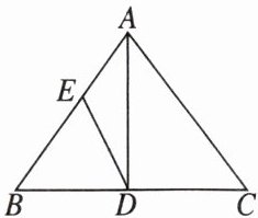 (2)因为AB=AC,D是BC的中点,所以AD⊥BC,所以∠ADB=90°,所以∠ADE=∠ADB-∠BDE=25°。