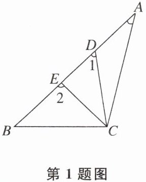 1 如图,∠A,∠1,∠2的大小关系是 ( )