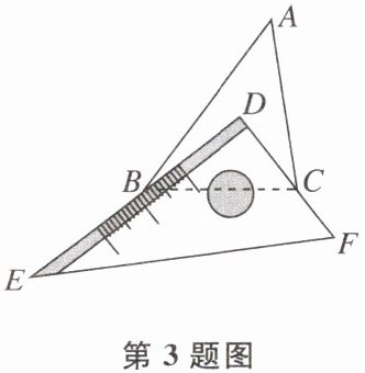 3 如图,有一块直角三角板DEF放置在△ABC上,三角板DEF的两条直角边DE,DF恰好分别经过点B,C。在△ABC中,∠DBA+∠DCA= 45°,则∠A的度数是 ( )