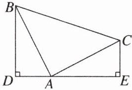 5如图,点 D,A,E 在同一条直线上,$BD \perp DE$于点 D,$CE \perp DE$于点 E,且$\triangle ABD \cong \triangle CAE$,$AD= 2\ cm$,$BD= 4\ cm$。求: