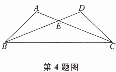 4如图,$\triangle ABC \cong \triangle DCB$,若$AC= 9$,$BE= 6$,则 DE 的长为 ______。