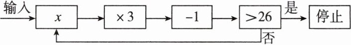 4. 如图,这是一个运行程序,规定:从“输入一个值$x$”到“结果是否$>26$”为一次程序操作,如果程序操作进行了1次后就停止,则$x$的最小整数值为 ( )
