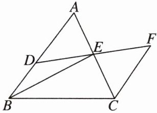 5 如图,在△ABC中,D为AB上一点,E为AC的中点,连结DE并延长至点F,使得EF= ED,连结CF。