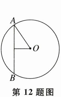 12. 如图,⊙O的半径OA= 5 cm,圆心O到弦AB的距离为3 cm,则弦AB的长度为______cm。