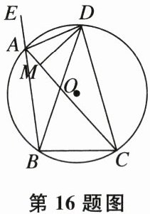 16. 如图,△ABC内接于⊙O,其外角平分线AD交⊙O于点D,DM⊥AC于点M,则下列结论中正确的是______。(填序号)