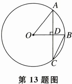 13. 如图,在⊙O中,∠AOB= 58°,OB⊥AC于点D,则∠OBC= ______度。