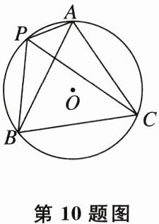 10. 如图,A,P,B,C是⊙O上的四点,∠APC= ∠CPB= 60°。若四边形APBC的面积为$\frac{36\sqrt{3}}{7}$,且PA:PB= 1:2,则⊙O的半径为( )
