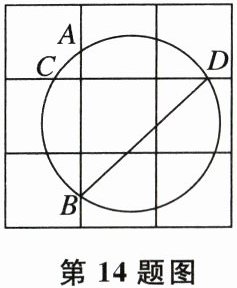 14. 如图,在3×3的正方形网格中,图中的两条弦AB= CD,则∠ABD= ______。