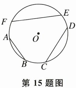 15. 如图,在半径为1的⊙O中有三条弦,它们所对的圆心角分别为60°,90°,120°,那么以这三条弦长为边长的三角形的面积是______。