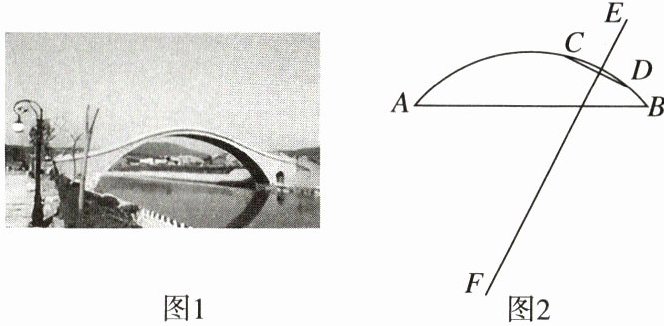 19. (8分)如图1,这是一座拱桥,用$\widehat{AB}$表示桥拱,如图2。