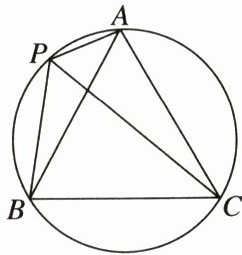 23. (10分)如图,A,P,B,C在圆上,∠APC= ∠CPB= 60°,连结AB,BC,AC。