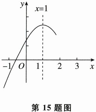 15. 已知二次函数$y= ax^2+bx+c(a≠0,a,b,c$为常数)的图象,如图所示。下列四个结论:①$b>0$;②$b<a+c$;③$c<4b$;④$a+b<k^2a+kb$($k$为常数,且$k≠1$)。其中正确结论的序号是______。